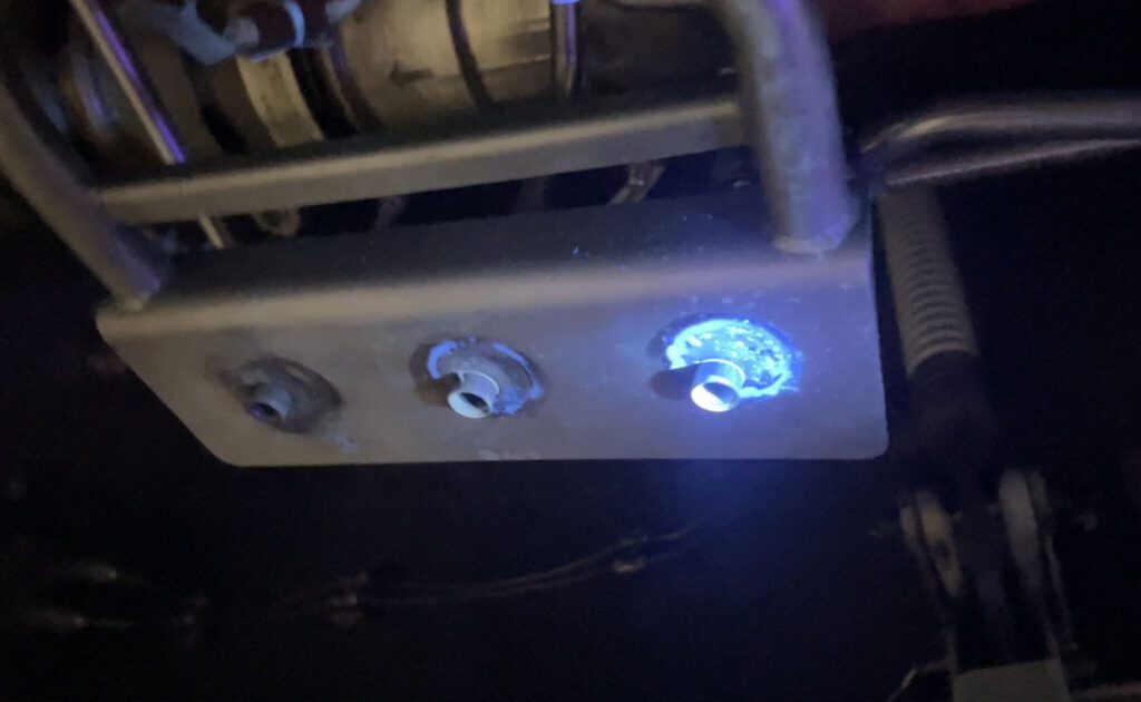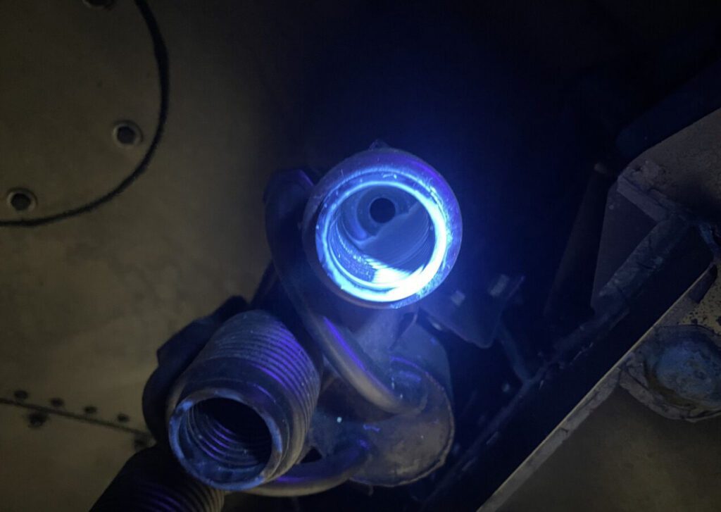 Oil itself is often difficult to trace because it spreads across multiple surfaces and may not be visible under standard inspection lighting. UV light inspection enhances visibility by using fluorescent oil additives that fluoresce brightly under ultraviolet illumination. This makes it possible to pinpoint the exact leak source, even in complex APU compartments with limited access.
