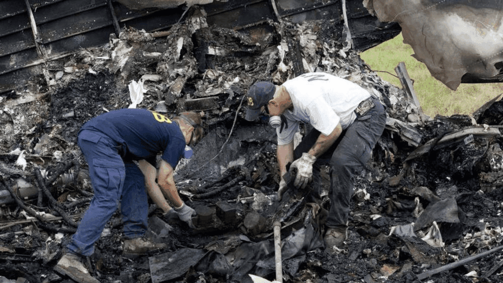 Specialized sorting and chemical analysis techniques are being used to differentiate aircraft components from industrial materials and existing metals at the scene. Multiple buildings were set on fire or destroyed in the crash.
