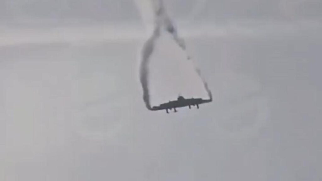 - Visual evidence: Video footage shows the aircraft breaking apart in flight, with the forward fuselage, centre section, and tail separating